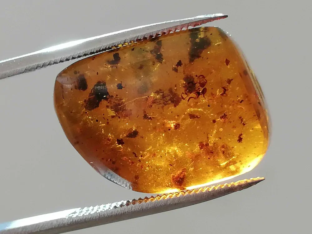 Poznámka: Části rostlin, hmyz a další inkluze nacházející se hluboko uvnitř jantaru tmavého, třešňového, nebo jiné tmavé variety, jde špatně zachytit na fotografii.