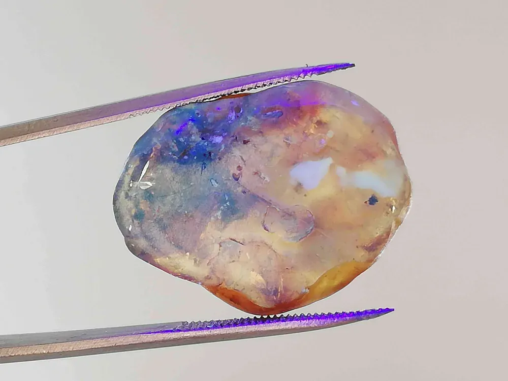 Jantar obsahuje: Žlutohnědý jantar průhledný, probarvený místy odstínem barvy bílé, části vegetace, inkluze lesní půdy, na tomto jantaru je vidět příklad pěkné silné krusty.