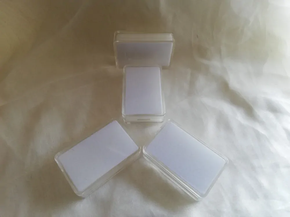Praktická plastová čtvercová krabička určená pro bezpečné uložení šperků, minerálů nebo sběratelských drobných předmětů.