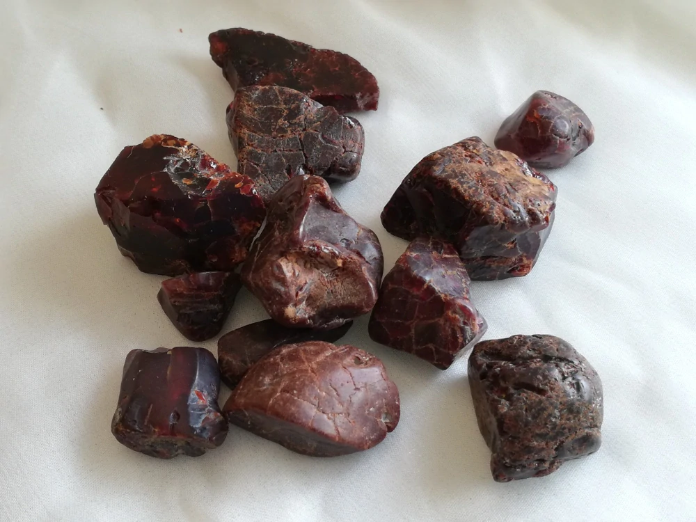 Sada obsahuje: 12 jedinečných kusů pravého surového červeného myanmarského jantaru.